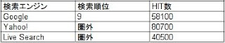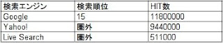 “TAKA@P.P.R.S OLD!!!”で特定のキーワードの順位を各検索エンジンで調べてみた。