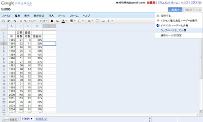アップしたスプレッドシートを開く。